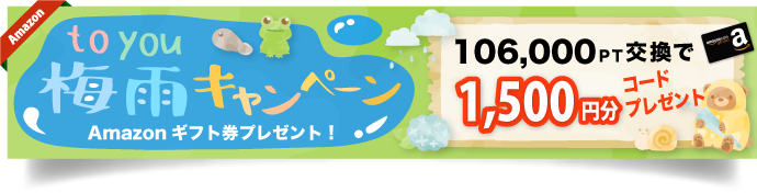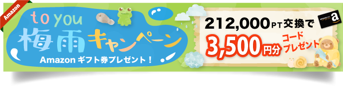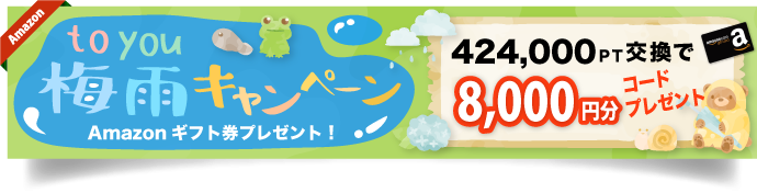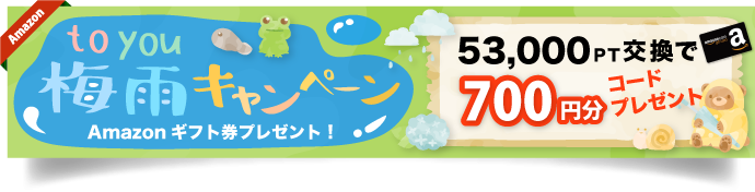 ●全商品対象で16,000pt以上の交換で、アマゾンギフト【200円分】のコードをto you(あなたへ)
